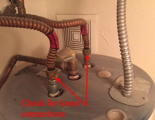 The connections on the cold water inlet and hot water outlet pipes coming into/out of the tankless unit can become loose over time—especially if they were not properly tightened to begin with.